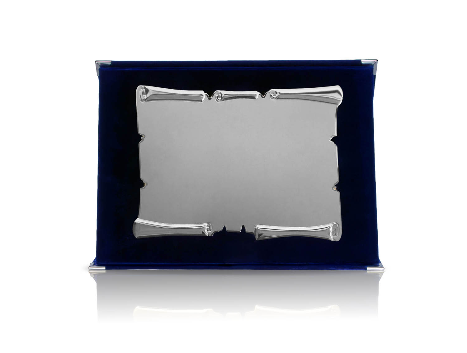 Targa Personalizzata Sottile con Astuccio in Velluto Blu + Pergamena Argento